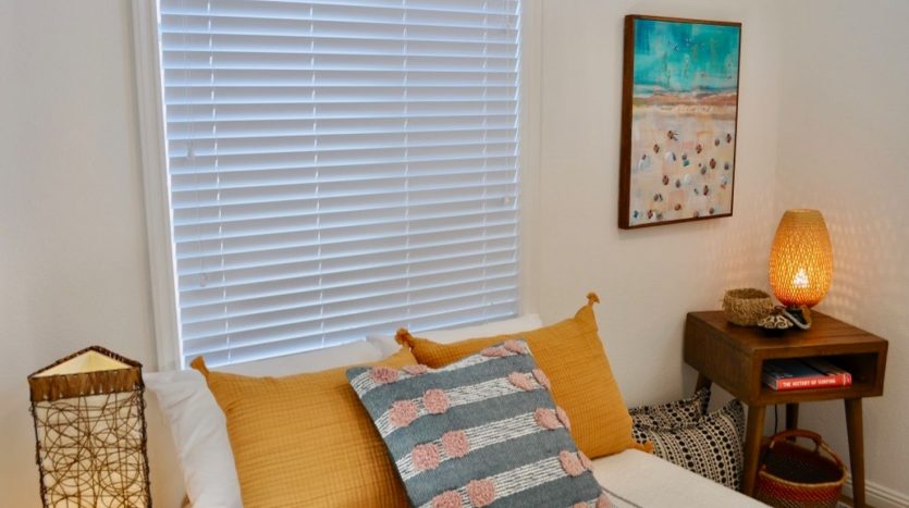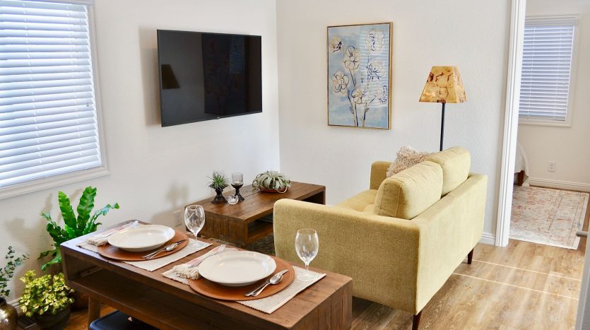 La Mesa: relax and enjoy the solitude in your new cozy and efficient 2 bedroom back house, with very private patio area. Tranquil residential neighborhood; yet shopping, restaurants, banks, etc. are all within a 1-2 block radius. Hikers, runners, bikers, paddlers and fishermen will love Mission Trails Park & Lake Murray which is just a short one block stroll away! Mission Trails/San Carlos Golf Course is less than one mile away. Quick and Easy freeway access is 2-3 minutes from home. Newer lights and bright home featuring a super energy efficient Fujitsu AC & heating system, as well as double paned windows and louvered blinds. Kitchen has all new appliances including compact washer and gas dryer. Beautiful quartz countertops in both kitchen and bath, with upgraded sinks and faucet fixtures in each. Vinyl plank flooring throughout. Double dormer style skylights & lighted ceiling fans in each bedroom. Wall Mounted 55 inch LG ultra high definition TV (pre wired for streaming & high speed internet), patio furniture, lockable storage shed, and water are included. No smoking or pets please.