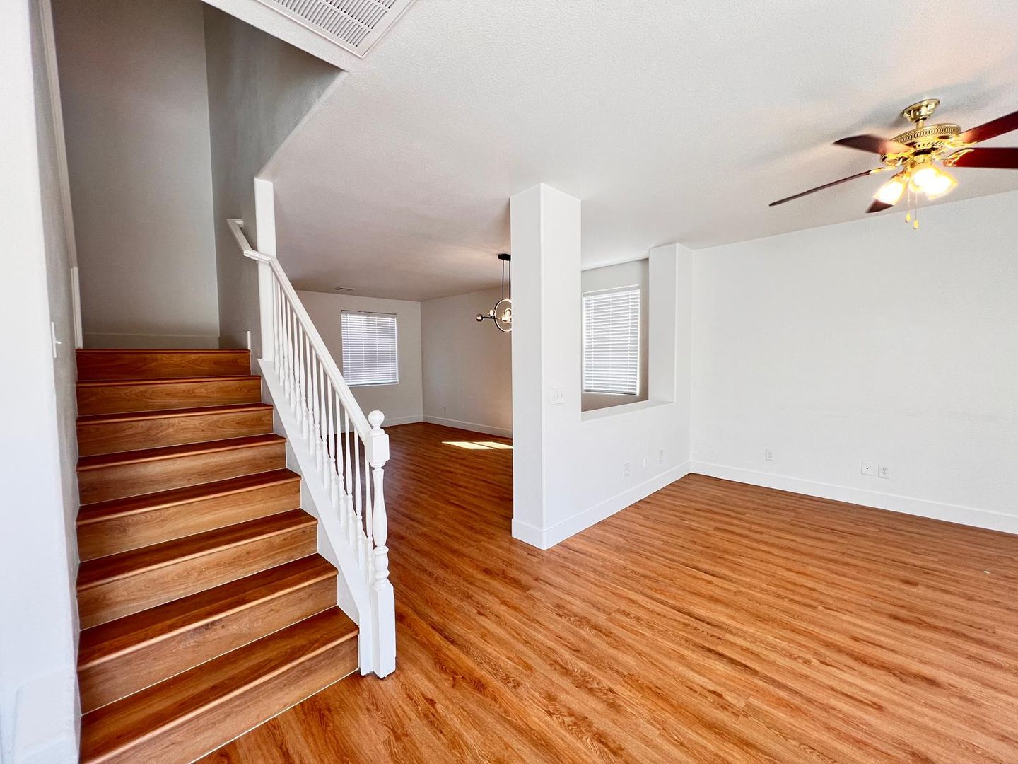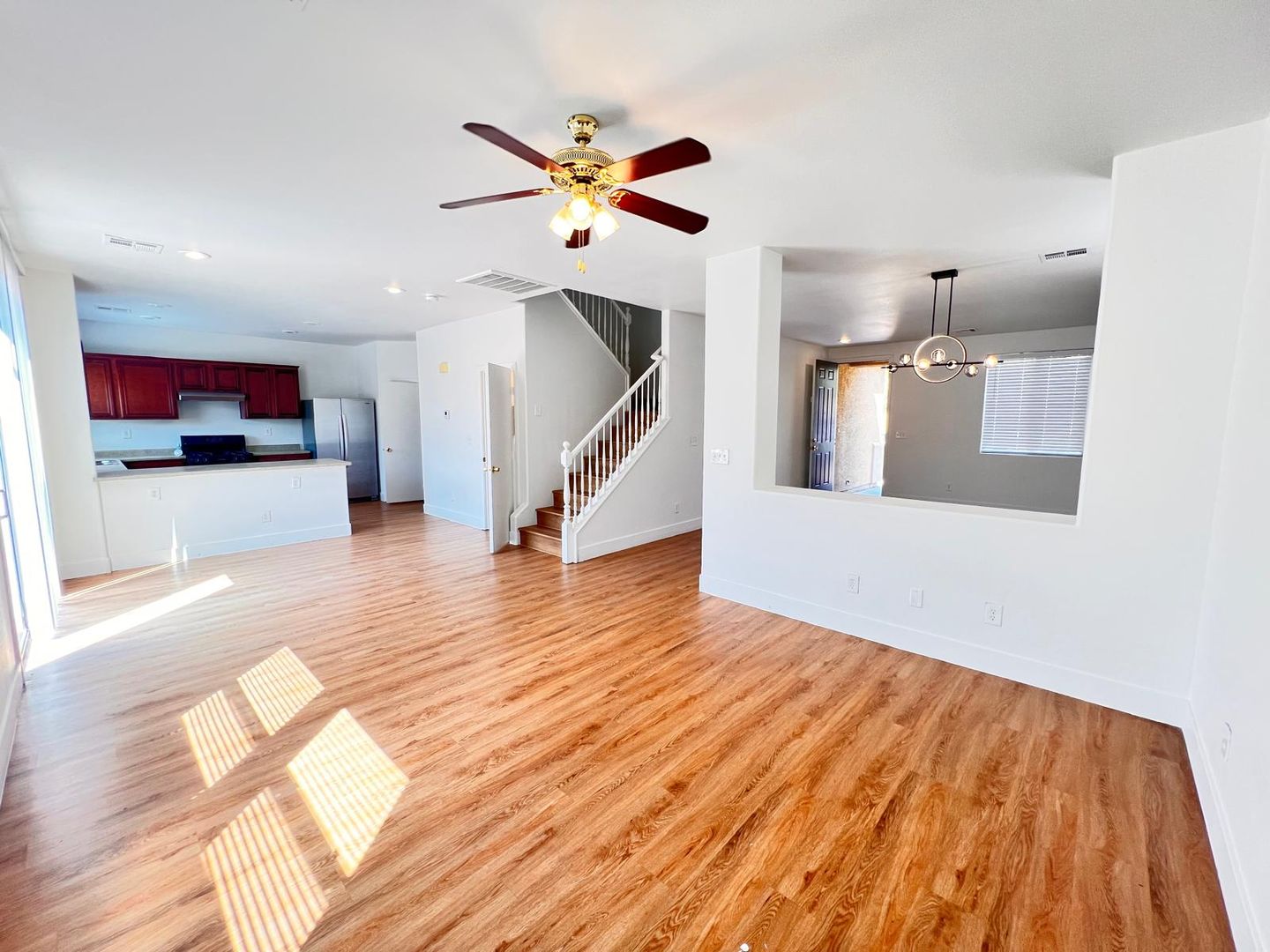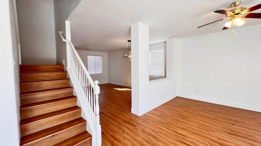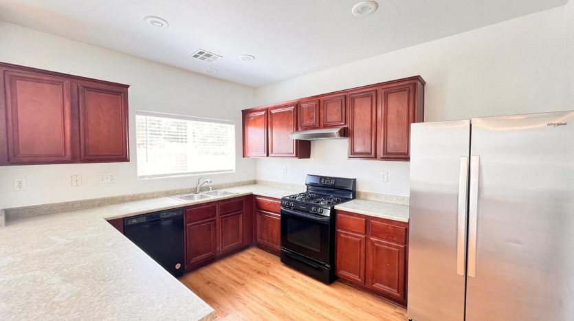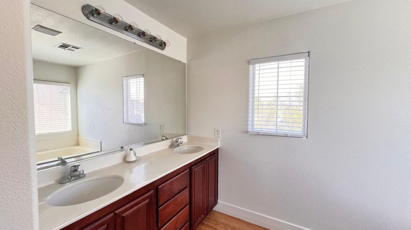 Delightful two-story, 3-bedroom, 2.5-bath home in North Las Vegas! Terrific curb appeal with a welcoming front porch that leads into a combined living and dining area. A pony wall separates the living space from the cozy family room. The kitchen features granite countertops, appliances, a breakfast bar, pantry, and a charming garden window. Laundry is conveniently located on the main level. All bedrooms are upstairs, including an oversized primary suite with a walk-in closet and space for a sitting area. The primary bath offers dual sinks, a garden tub, and a walk-in shower. Enjoy a large backyard with a patio, plus a driveway leading to a two-car garage.